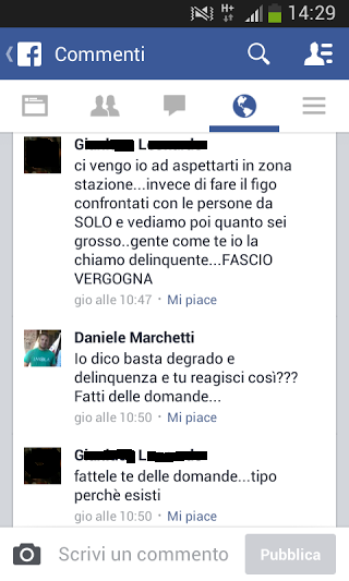 Poco importa se tramite il mio profilo facebook mi sono giunte delle intimidazioni da un personaggio vicino alla sinistra più radicale del tipo “ti aspetto io in stazione”.