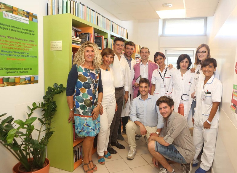 Già colma di libri, oltre 1200, in gran parte ricevuti attraverso l’iniziativa di raccolta libri e dvd promossa negli ultimi tre mesi del 2014 da Librerie Coop Centro Leonardo, ma anche donati direttamente da pazienti e cittadini e, proprio in occasione di questa iniziativa, da Fondazione Cassa di Risparmio di Imola, ANPI, Cooperativa Bacchilega e da altri amici di Bettini.