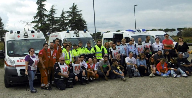 A rendere il tutto ancor più realistico hanno contribuito i bravissimi Truccatori e simulatori della Croce rossa di Bologna, coordinati da Lucia Marcis, istruiti a specifiche tecniche di trucco e recitazione, che hanno magistralmente impersonato i feriti, gli ustionati, gli intossicati dal fumo ( i truccatori sono riusciti a riprodurre perfettamente ferite e traumi) e persino la moglie di un dipendente, arrivata trafelata e spaventatissima all’idea che suo marito fosse rimasto intrappolato nei locali. Anche le patologie da cui i malcapitati erano stati colpiti sono state simulate in modo estremamente veritiero. Ed ecco arrivare le barelle per caricare i feriti e trasportarli nella vicina area dedicata al triage e al primo soccorso, dove gli attori sono stati medicati e curati come accade nella realtà in queste circostanze, per poi decidere, in base alla gravità, se fosse il caso di trasferirli negli ospedali della zona.
