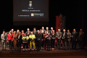 Un teatro ‘Ebe Stignani’ gremito e molto coinvolto emotivamente ha accolto giovedì 22 dicembre, alle ore 18, la consegna dei premi Città di Imola – Grifo di cristallo. La cerimonia è avvenuta all’interno dell’evento augurale “Imola: un anno di noi”, organizzato dall’Amministrazione comunale, in collaborazione con la Fondazione Cassa di Risparmio di Imola, allo scopo di incontrare i cittadini e di condividere l’augurio per le festività, ripercorrendo insieme quanto è stato fatto nel corso dell’anno che si va a chiudere.