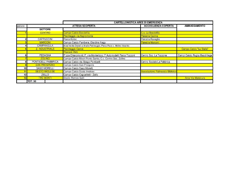 In totale si tratta di 30 cartelli: 3 per le “Aree di Ammassamento dei...
