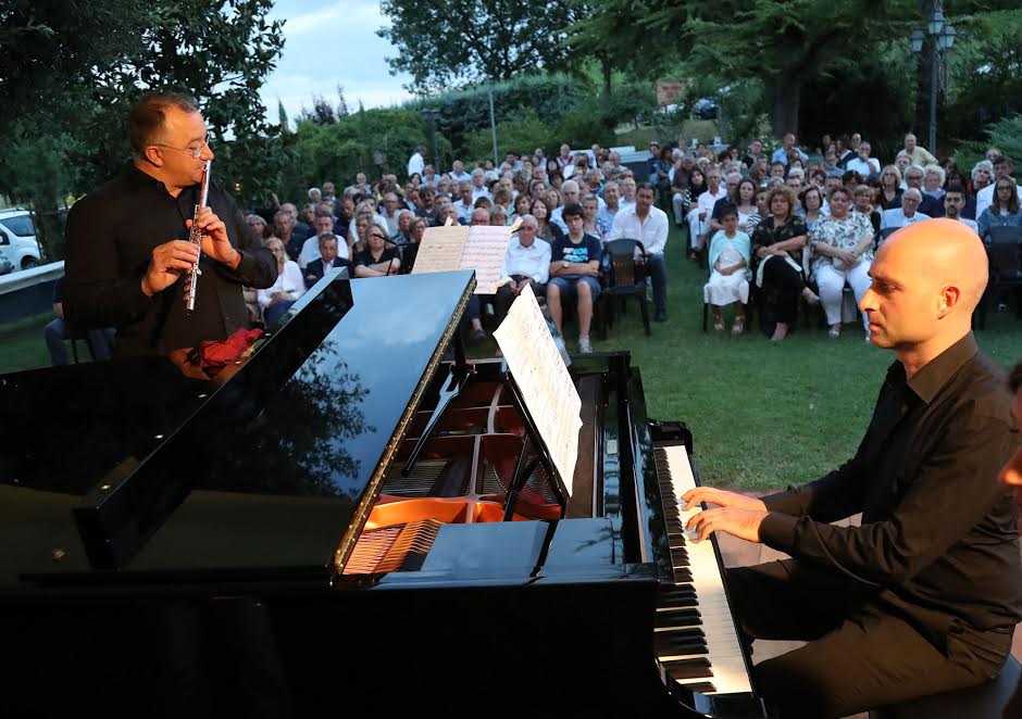 Dal titolo “Il Bello, il Buono, il Vero”, il concerto d’estate ha voluto porre in evidenza il filo conduttore dell’impegno e dello sforzo nella ricerca di questi tre aspetti, in particolare del ‘vero’, sia per chi produce vini sia per chi esegue musica. A questo proposito, ad esibirsi sono stati i maestri Luigi Moscatello, pianoforte e Fulvio Fiorio, flauto, entrambi docenti anche alla Vassura Baroncini, che hanno deliziato l’attenta platea con un repertorio che ha compreso brani di F. Schubert, G. Enesco, J. Remusat e A. Leduc per finire con G. Donizetti. Al termine grandi applausi e l’immancabile bis a suggellare una prestazione di altissimo livello.